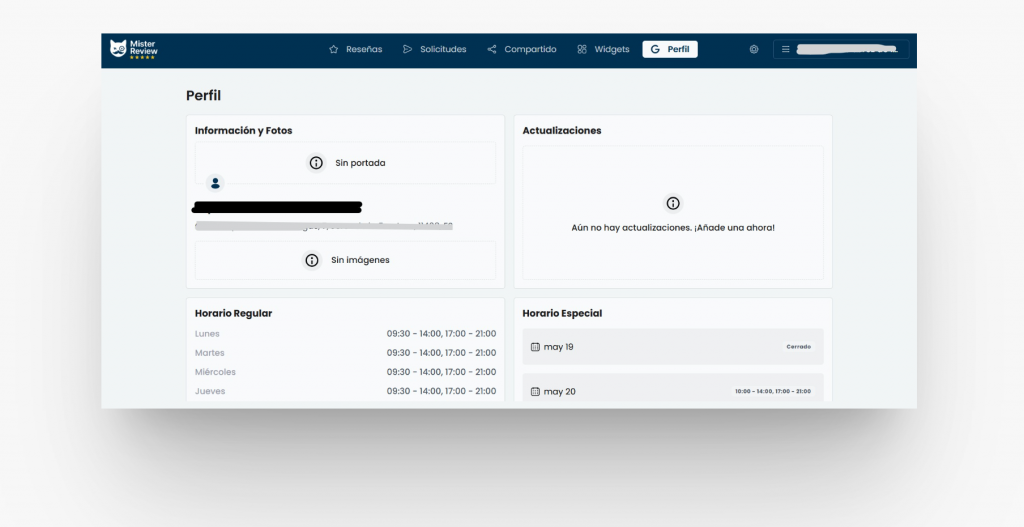Actualiza la información de tu perfil de Google, fotos, horarios habituales y especiales en un solo lugar.