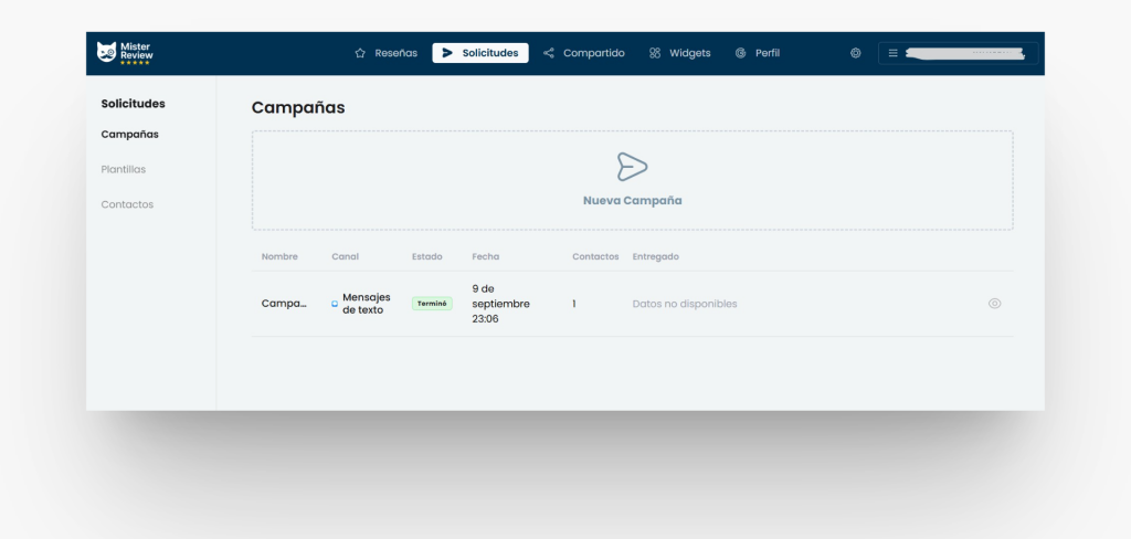Crea plantillas, importa contactos y envíales el link de reseña optimizado por SMS. Opcional y adaptable según volumen de usuarios.